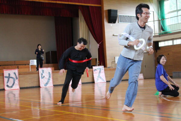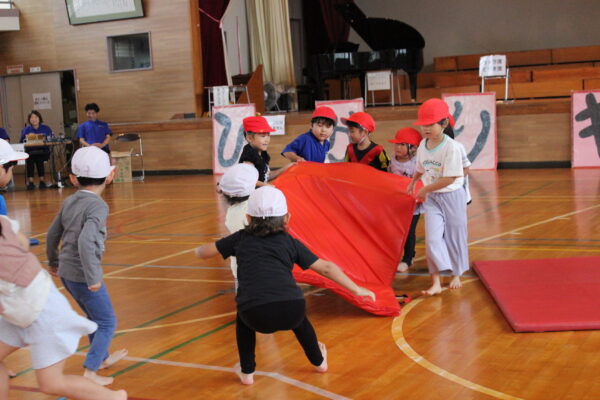”引っぱれマット”では、自分たちの陣地に多く入れたほうが勝ち!助け合う姿がとってもかっこよかったです。