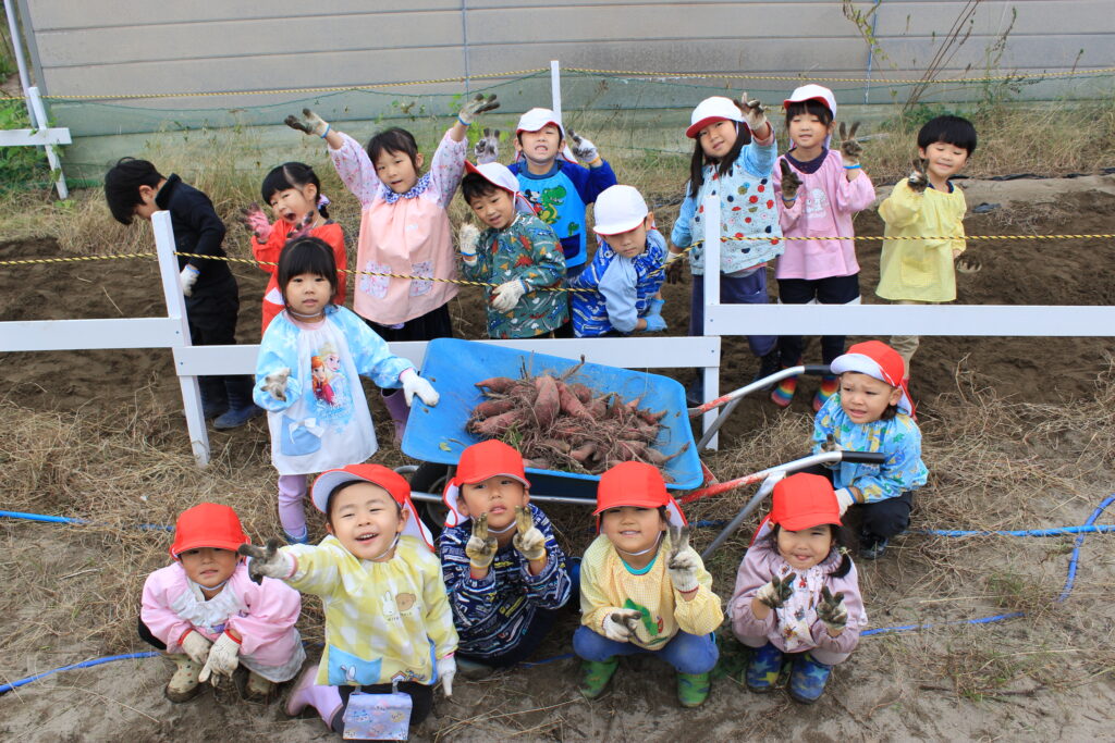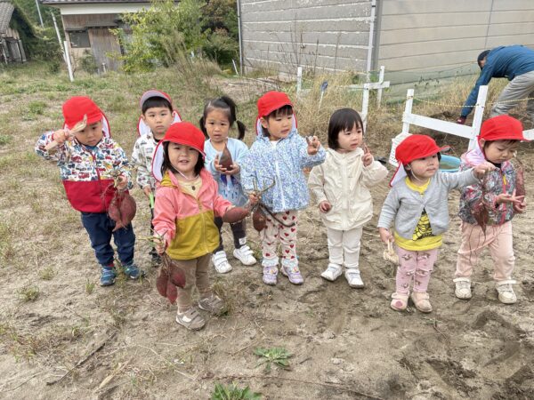 幼児組は労作でも一緒に行った、敬和学園高校にも出向き、2回も芋ほり体験をすることができました。