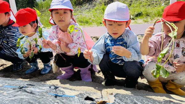 5月、みんなでさつまいもの苗を植えました。
